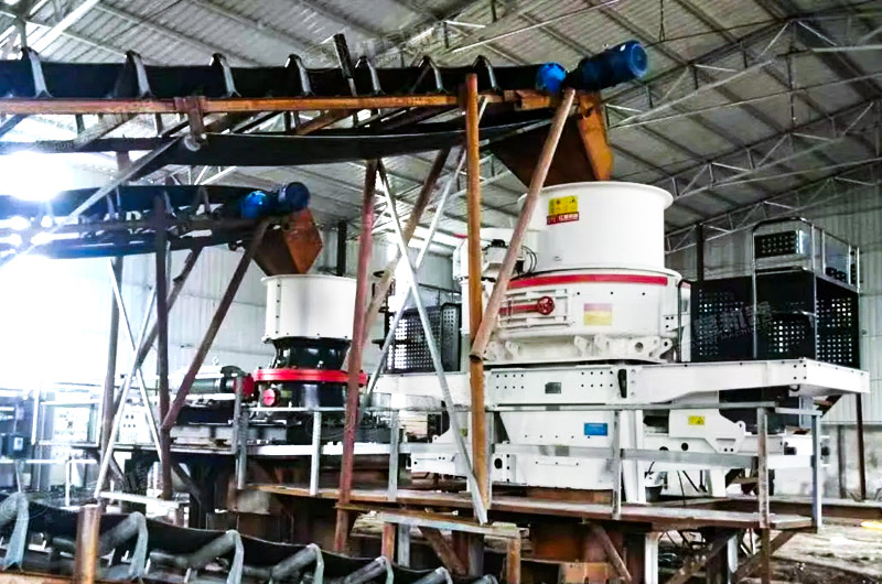 制砂的產量和整條生產線的設備都有關系,生產線前端的顎破、圓錐破、輸送機等的處理量都要與制砂機匹配,比如上游產量過大而制砂機處理不及,就會出現(xiàn)堵料的問題。