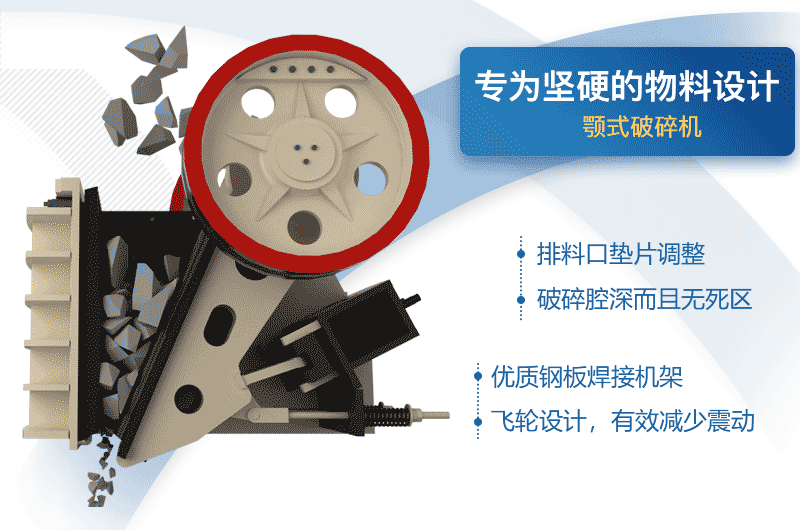 顎式破碎機,有”碎石先鋒“之稱,常用來作初碎作業(yè)。它將開采的大塊礦石破碎成較小的粒度,破碎力大、工作可靠、操作維修方便,是礦山砂石破碎的主要設備。